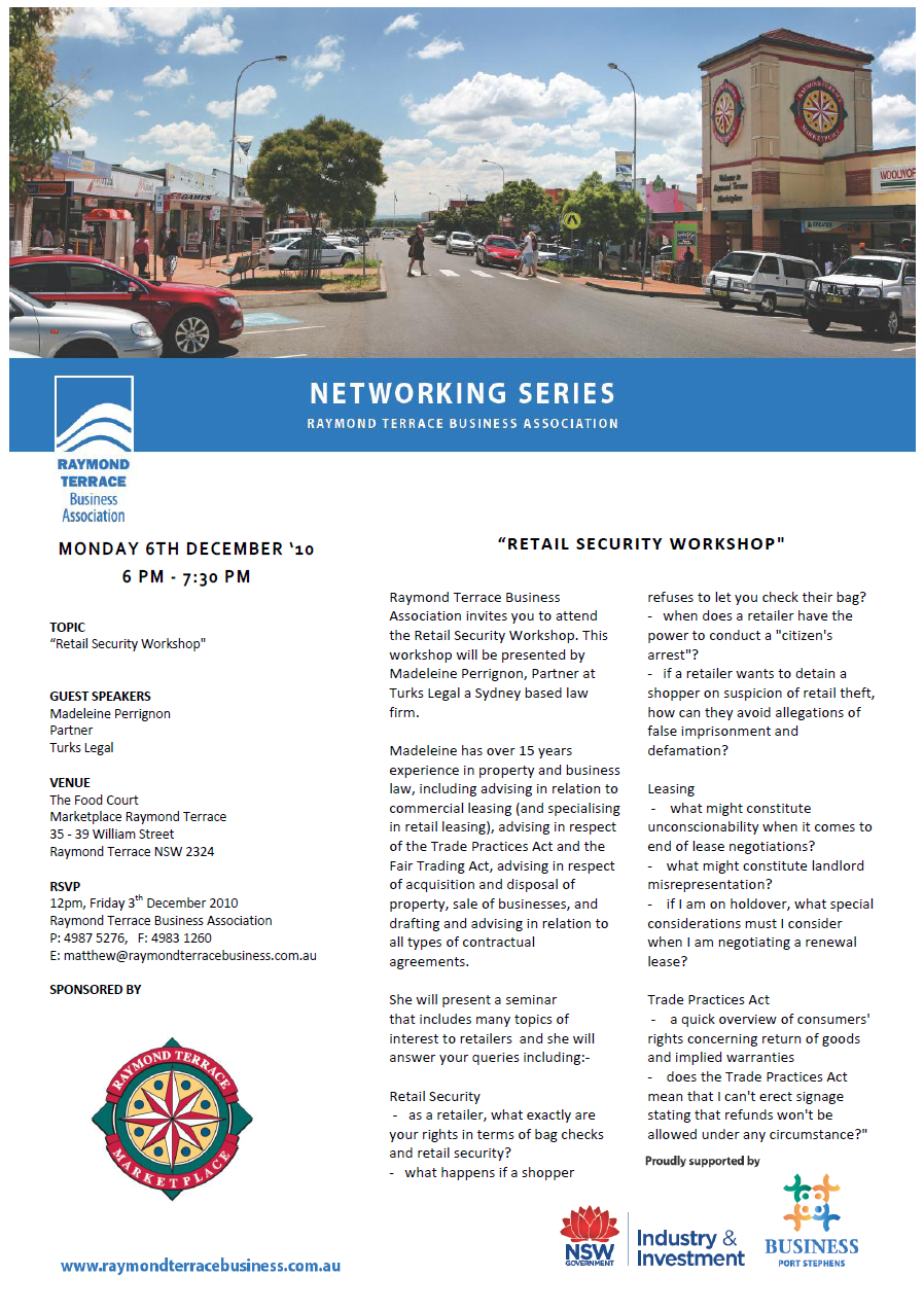 This month’s workshop will be presented by Madeleine Perrignon, Partner at Turks Legal – a Sydney based law firm.
